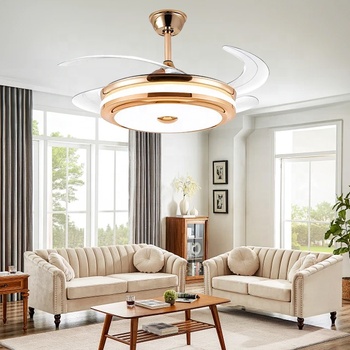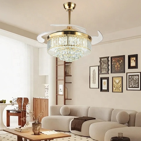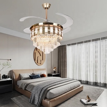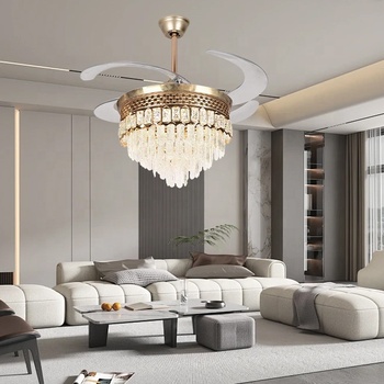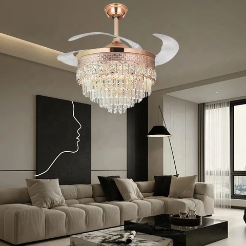 Lampu Kipas tidak terlihat mewah dapat ditarik, lampu kipas gaya modern kamar tidur ruang makan, lampu kipas kristal ruang tamu Villa