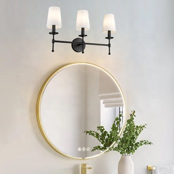 Estilo europeu Três Cabeças Faróis De Espelho De Tecido, Vaidade Moderna Do Quarto Minimalista, Luzes De Parede Do Armário De Espelho Do Banheiro