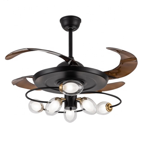 3 lưỡi đen yên tĩnh G9 đèn trần phòng khách 6 tốc độ biến tần động cơ vô hình quạt ánh sáng 48in 1220mm ABS Đèn quạt