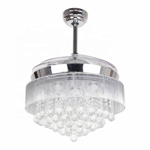 Led 32W Hộ Gia Đình Phòng Khách Phòng Ăn Trần Fan Ánh Sáng Sang Trọng Chất Lượng Cao 4 Lưỡi Nhựa Chrome Pha Lê Trang Trí Fan Hâm Mộ